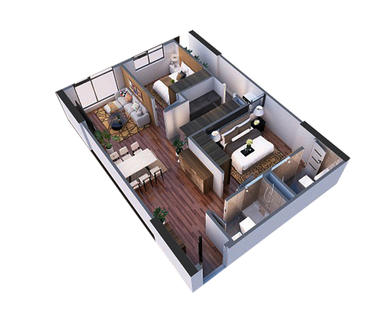 - Diện tích cây xanh & hạ tầng kỹ thuật: 79,3%