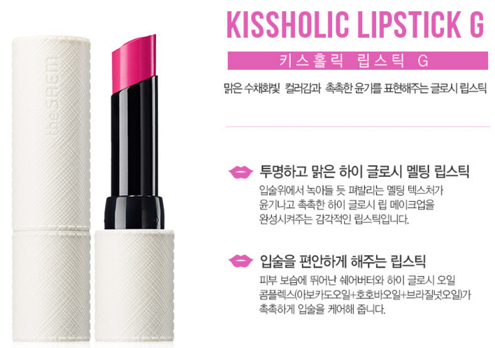 Với công thức phù hợp cho đôi môi , dưỡng ẩm đôi môi tuyệt vời với bơ hạt mỡ, dầu của trái cây babassu, Cocoa butter được chiết xuất từ hạt của trái cocoa, mango butter The SAEM Kissholic Lipstick G giúp cho son lên môi mềm mịn không bị vón cục và giữ màu sắc được bền lâu.